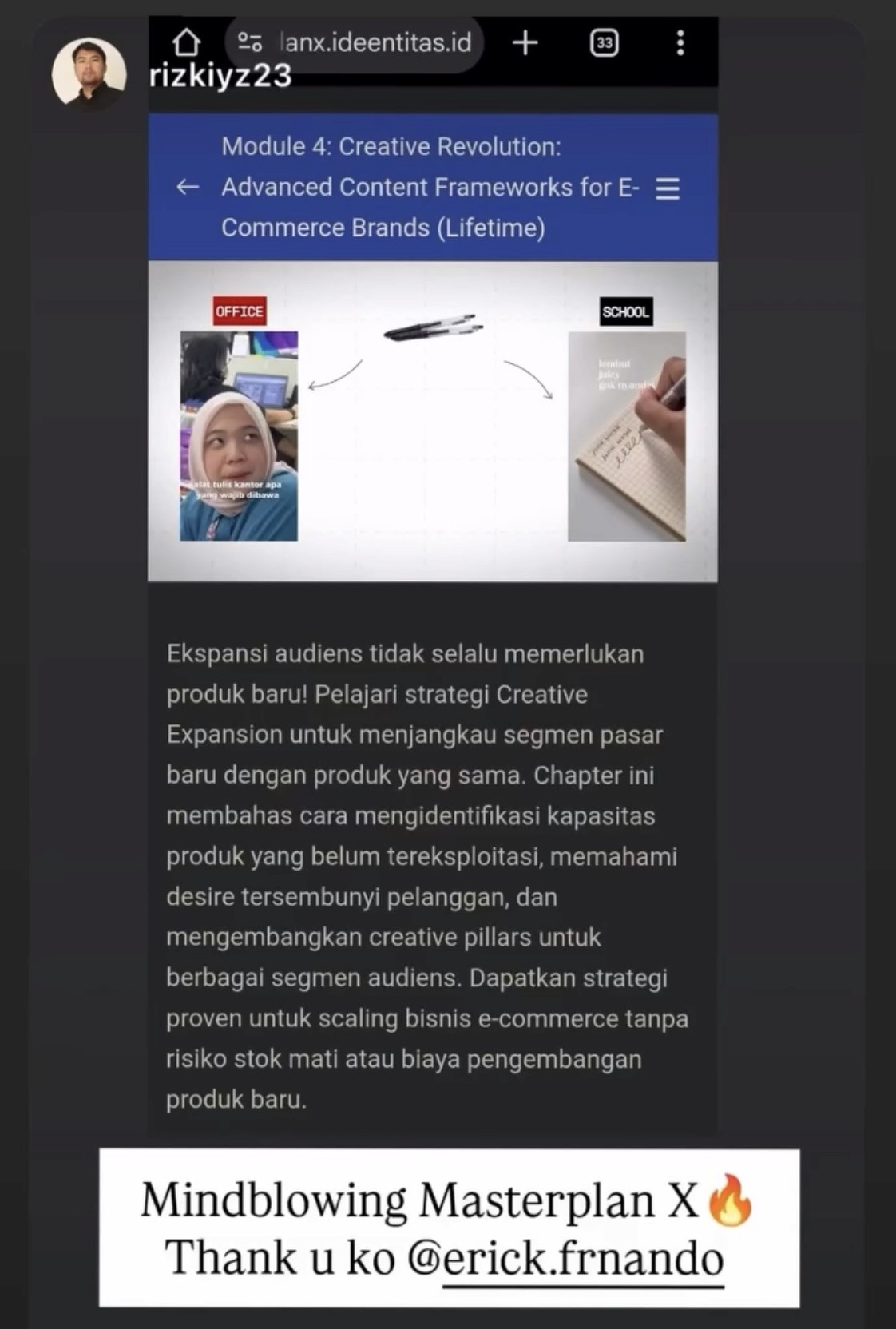“Gua gak pernah beli course, tapi ini beda.Pertama kali gua pelajari, langsung kebuka strategi untuk bangun brand yang bisa jadi intangible asset untuk diwariskan.”